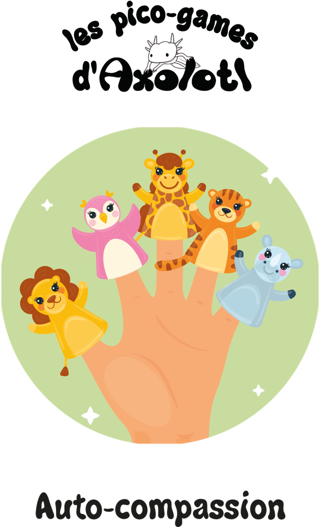 Un petit guide ludique d’Erell pour apprendre à pratiquer l’auto-compassion avec des marionnettes.