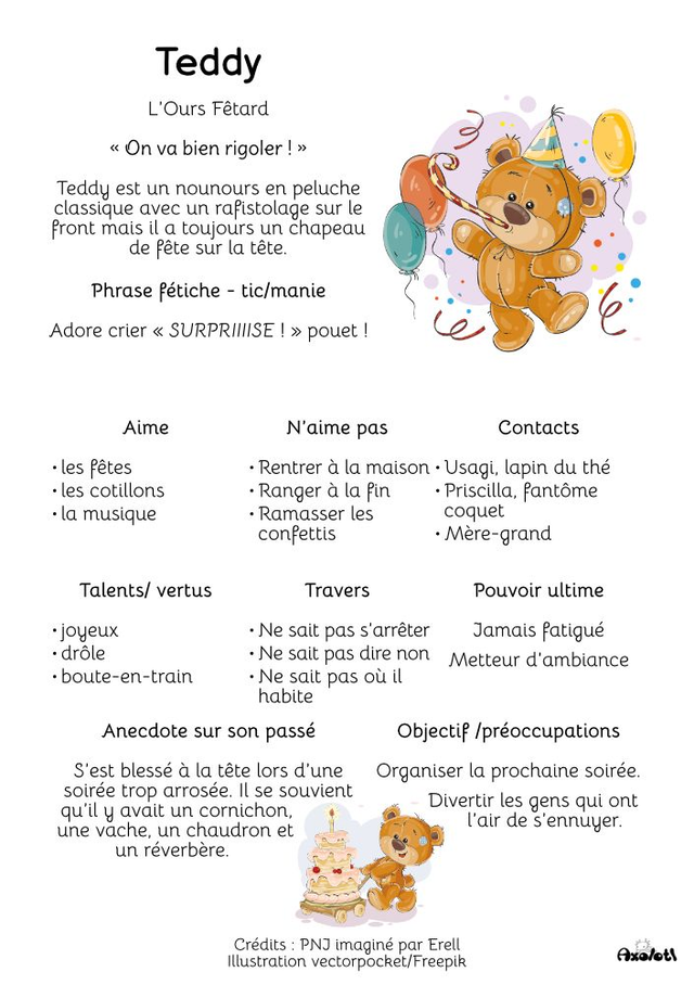 Découvrez des personnages drôles et attachants, utilisables avec les enfants, dans cette collection de PNJs* pour vos jeux de rôles ou vos histoires du soir !